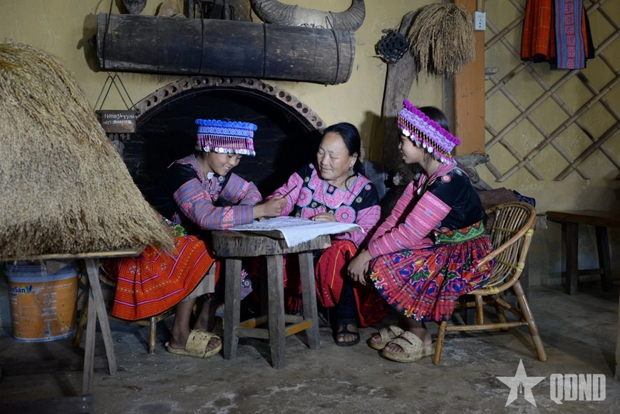 Các nghệ nhân lớn tuổi truyền nghề vẽ sáp ong trên vải - một nghề thủ công truyền thống lâu đời, mang đậm bản sắc văn hóa của Mông cho thế hệ trẻ.