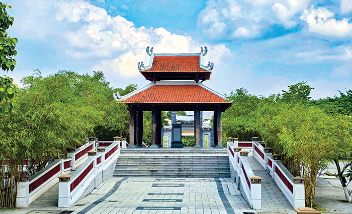 Hai hàng tre vàng óng trồng ở trục thần đạo, lối chính vào Đền thờ Vua Hùng TP Cần Thơ.