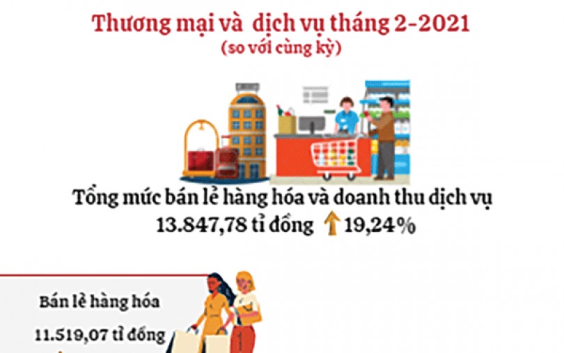 Bán lẻ hàng hóa và dịch vụ tiêu dùng tháng 2 tăng 19,24%