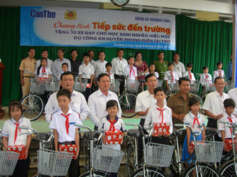 Báo Cần Thơ tổ chức trao xe đạp và tập cho 20 học sinh nghèo, hiếu học xã Trường Long, huyện Phong Điền
