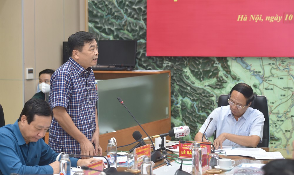 Ông Nguyễn Hoàng Hiệp, Thứ trưởng Bộ Nông nghiệp và Phát triển nông thôn nhấn mạnh đến dòng người hồi hương bằng xe máy từ các tỉnh phía Nam về quê có thể sẽ gặp nguy hiểm khi nhiều tỉnh đã có mưa lớn do bão số 7. Ảnh: VGP/Đức Tuân