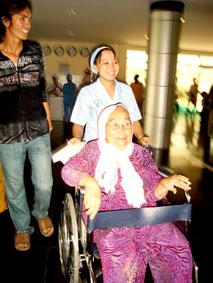 Bệnh nhân được điều dưỡng đưa đến tận phòng khám bệnh. Ảnh chụp tại BV Đa khoa Hoàn Mỹ Cửu Long. |