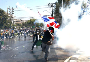 Đụng độ giữa cảnh sát và những biểu tình tại Thủ đô Bangkok tiếp tục nổ ra hôm 2-12, một ngày sau khi phe áo vàng thất bại trong việc chiếm lấy tổng hành dinh và các cơ quan chính phủ trọng yếu khác của chính quyền Thủ tướng Yingluck Shinawatra.