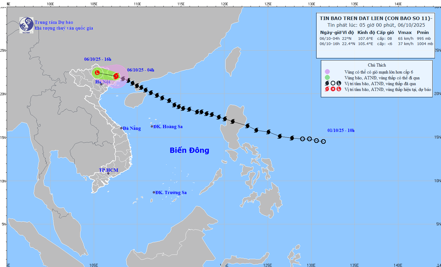 Bão số 11 đã đi vào đất liền tỉnh Quảng Tây của Trung Quốc và tiếp tục suy yếu