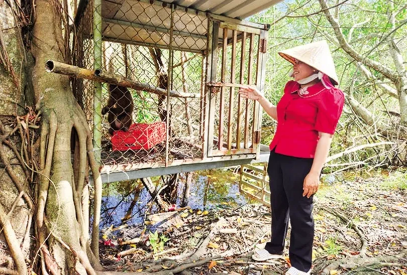 Chiếc chuồng sắt có mắt lưới chi chít, bên trong được nhân viên bố trí cành cây ngang dọc làm nơi ở cho rái cá lông mũi. Ðến chuồng khác, thấy bóng dáng chị Néang Mala, vài con vượn má vàng mừng rỡ chạy đến nhận thức ăn. Chị Néang Mala cho chúng ăn, bẻ nhánh cây, vớt ít bèo, chăm cái tổ để chúng có giấc ngủ ngon...