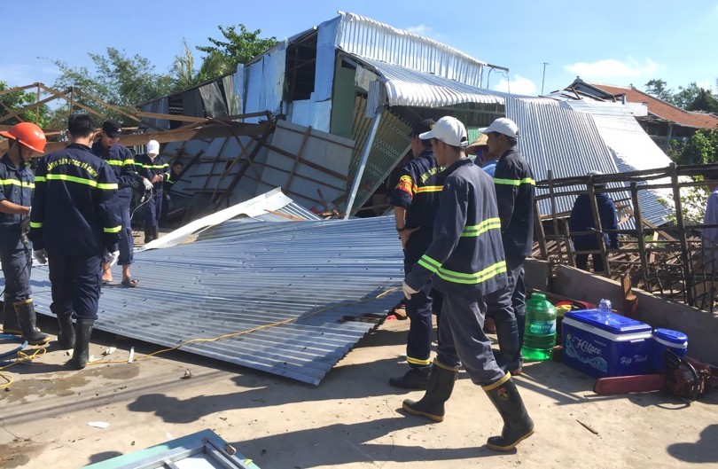Lực lượng cứu hộ quận Thốt Nốt hỗ trợ người dân dọn dẹp, sửa chữa nhà cửa sau cơn mưa kèm theo lốc xoáy ngày 30-5.