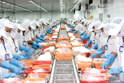 Công nhân chế biến cá tra tại Công ty cổ phần Xuất nhập khẩu thủy sản Cần Thơ.