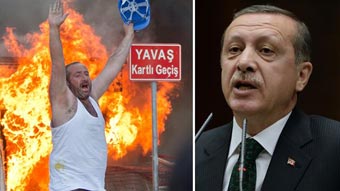 Thủ tướng Erdogan (phải) trước làn sóng phản đối của người biểu tình. Ảnh: Foxnews