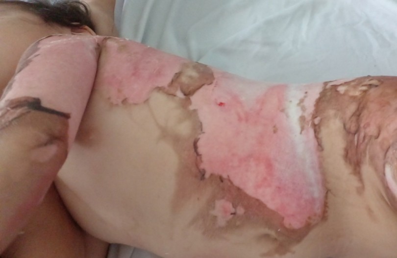 Bé gái 3 tuổi vấp thau nước sôi, phỏng nặng