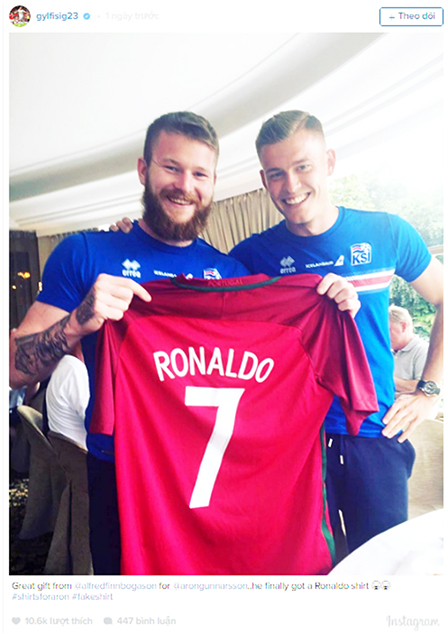 * Aron Gunnarsson (ảnh) cuối cùng cũng có được áo đấu của Ronaldo. Ngôi sao Cristiano Ronaldo bị cho là đã có hành động không đẹp khi phớt lờ yêu cầu trao đổi áo đấu của Aron Gunnarsson sau trận hòa với tuyển Iceland. Biết chuyện, Alfred Finnbogason, một đồng nghiệp, vừa gởi tặng cho anh chiếc áo đấu số 7 của Ronaldo. (Theo Espnfc)