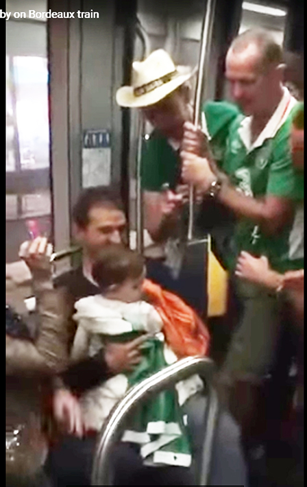 * Cổ động viên CH Ireland (ảnh) hát ru trẻ con. Các cổ động viên CH Ireland tiếp tục tạo được thiện cảm trong một đoạn video mới đang xuất hiện trên mạng xã hội. Một nhóm cổ động viên CH Ireland thay vì la ầm ĩ trên đường về nơi nghỉ như thường thấy, thì họ hát những giai điệu êm dịu của các bài hát ru truyền thống khi gặp một đôi vợ chồng trẻ đang bồng đứa con nhỏ trên một chuyến xe điện ở thành phố Bordeaux. (Theo Espnfc)