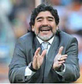 * Diego Maradona (ảnh) muốn thọ giáo Jose Mourinho. HLV đội tuyển Argentina tiết lộ rằng ông là bạn với “ông chủ” mới của CLB Real Madrid và có thể gọi điện cho “người đặc biệt” để thảo luận chiến thuật khi World Cup đang bước vào giai đoạn nóng bỏng. Mặc dù lối chơi phóng khoáng của “vũ điệu Tango” rất khác với lối đá thực dụng của Mourinho, nhưng Maradona cho rằng ông khâm phục HLV này sau khi đã có vài giờ trò chuyện về chiến thuật tấn công và phòng thủ cùng nhau.
