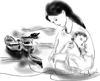 Đứa bé khóc đuối sức nên dần im. Sương cuống cuồng rờ rẫm khắp mình con, cô lấy áo quấn quanh ủ ấm cho đứa bé, rồi ẵm con bước vội về nhà ngoại...