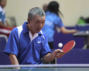 Hình ảnh gây xúc động không kém tại nhà thi đấu môn bóng bàn là người đàn ông trung niên có đôi tay teo tóp, nhưng đánh bóng rất chắc- VĐV Nguyễn Thanh Bình, 43 tuổi, của đội Đà Nẵng. Anh Bình bị sốt bại liệt năm 1- 2 tuổi nên teo cơ 2 tay và 2 chân. Anh làm quen với bóng bàn khá trễ vào năm 2005, khi tham gia đội khuyết tật Đà Nẵng. 4 năm qua, từ 2009 đến 2013, anh Bình luôn đoạt ít nhất 2 HCV tại Hội thao Người khuyết tật toàn quốc ở các nội dung đơn, đôi và đồng đội. Đó là nỗ lực rất lớn của VĐV người Đà Nẵng bởi mỗi lần cầm vợt, anh phải lấy dây buộc vào tay để tránh bị vuột vợt khi tay ra mồ hôi. Anh Bình kể, hồi mới tập luyện bóng bàn, sức khỏe yếu lắm, tập xong bị đau lưng không chịu nổi. Bên cạnh đó, anh còn phải vượt qua những khó khăn của cuộc sống khi 2 vợ chồng sinh sống bằng nghề bán nước mía, trái cây tại TP Đà Nẵng. Thế nhưng, nhờ có HLV kiên nhẫn, chỉ bảo tận tình, sức khỏe anh Bình dần được nâng lên và hiện tại có thể thi đấu suốt nhiều trận liền tại giải.