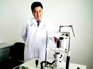 Bác sĩ Huỳnh Nhứt Thống đang kiểm tra thiết bị đo nhãn áp. |