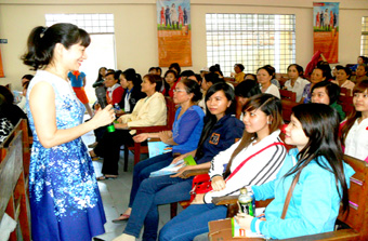 Bác sĩ Hiền Thu trả lời tư vấn của chị em tại hội thảo. |