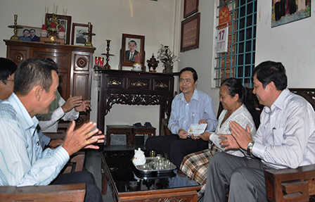 (CT)- Ngày 18-1-2014, đồng chí Trần Thanh Mẫn, Ủy viên Trung ương Đảng, Bí thư Thành ủy; cùng đại diện lãnh đạo Sở Lao động Thương binh và Xã hội, quận Ninh Kiều đã đến chúc Tết, tặng quà gia đình các đồng chí nguyên lãnh đạo cơ quan Trung ương và tỉnh Hậu Giang, tỉnh Cần Thơ đã từ trần gồm: Gia đình đồng chí Phạm Trọng Yêm, nguyên Phó Trưởng ban Tổ chức Trung ương; gia đình đồng chí Trần Nam Phú, nguyên Chủ tịch UBND tỉnh Hậu Giang; gia đình đồng chí Trần Văn Long, nguyên Ủy viên Ban Chấp hành Trung ương Đảng, nguyên Bí thư Tỉnh ủy Hậu Giang và gia đình đồng chí Bùi Văn Hoành, nguyên Chủ tịch UBND tỉnh Cần Thơ.
