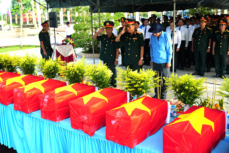 Đoàn của Ban Chỉ đạo 515 Quân khu 9 tưởng niệm các liệt sĩ. Ảnh: PHẠM TRUNG