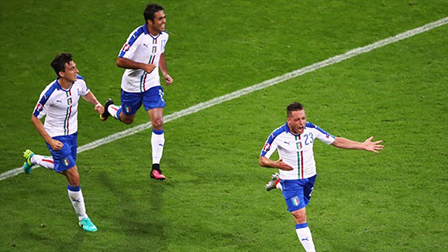 Pelle ăn mừng bàn thắng ấn định chiến thắng 2-0 cho tuyển Ý. ảnh: AFP/Getty