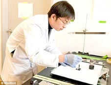 Pin siêu nhẹ được tạo ra bằng cách quét mực chứa ống nano carbon lên mặt giấy. Ảnh: Daily Mail