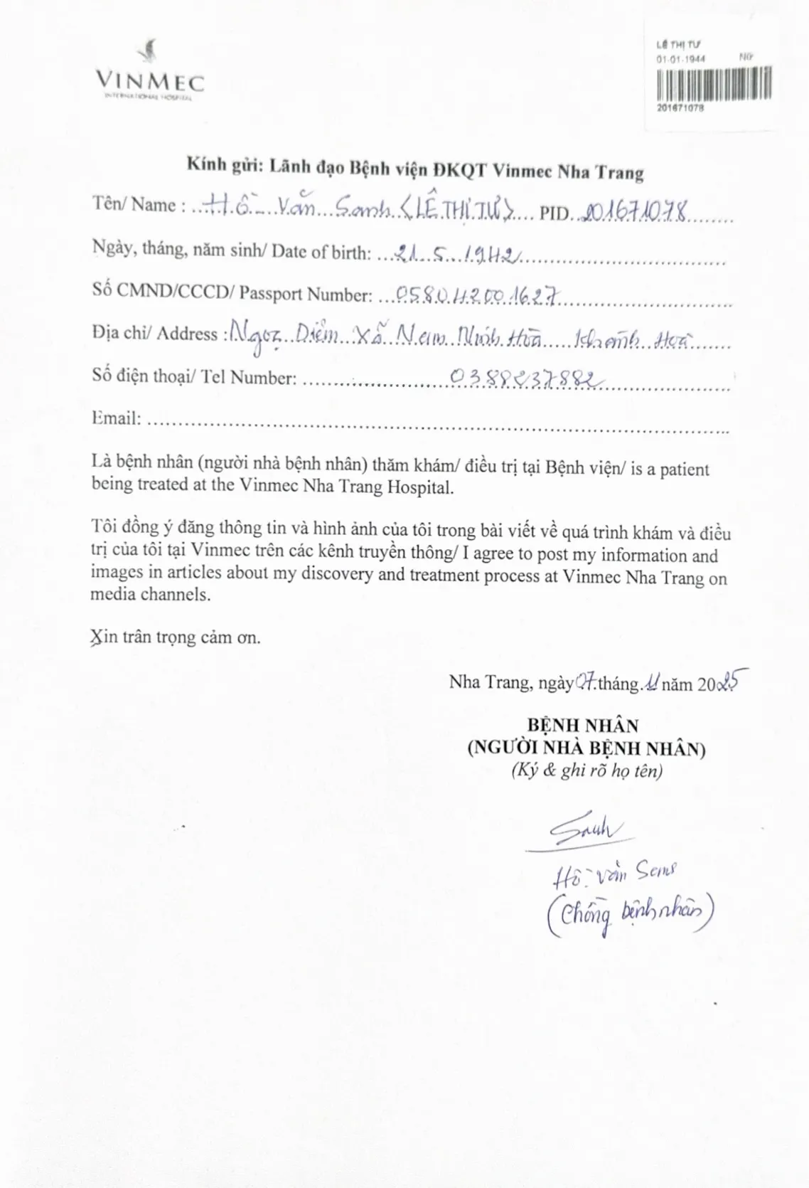 Trước khi đến Bệnh viện Vinmec Nha Trang, bà L.T.T. (81 tuổi, trú tại Khánh Hòa) từng trải qua 3 cuộc phẫu thuật u vùng cổ. Tuy nhiên, chỉ sau vài năm, khối u lại tái phát, thậm chí kích thước tăng nhanh bất thường. Bà gần như không thể nằm ngửa hay ngủ yên do khó thở, nuốt nghẹn, mệt mỏi kéo dài. Quay trở lại các bệnh viện cũ, bà đều bị từ chối phẫu thuật do khối u quá lớn, dính nhiều cơ quan, trong khi bà còn có bệnh nền phức tạp, gồm tăng huyết áp, đái tháo đường type 2 và hẹp mạch vành.