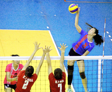 Hà Ngọc Diễm (8, truyền hình Vĩnh Long) được đánh giá là chủ công mạnh mẽ của bóng chuyền nữ Việt Nam. Ảnh: DƯƠNG THU |