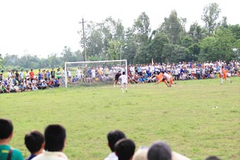 Chiều 31-7, giải diễn ra 2 trận đấu tranh hạng 3 và chung kết. Chưa đến 13 giờ, khán giả đã rục rịch kéo đến sân, mang theo cờ, trống để cổ vũ cho đội nhà. Nhiều bác lớn tuổi tranh thủ đến sớm, như thể được trở lại thời trai trẻ của mình từng ra sân quần thảo với trái bóng trên chính mảnh sân này. Trận đấu diễn ra cũng là lúc bà con đến đông đủ, lớp đứng, lớp ngồi bao quanh sân bóng. Một cơn mưa chợt ập đến, nhưng dường như không ai rời bỏ vị trí của mình, mà ở nán lại cho đến khi mưa tạnh để tiếp tục theo dõi từng pha bóng trên sân. Nhìn cảnh khán giả leo lên cây, lên mái nhà để xem trận đấu, có thể thấy sự hào hứng của một sân chơi phong trào ở xã vùng sâu này. Thế mới cám cảnh những sân bóng, đội bóng được đầu tư hàng chục tỉ đồng ở sân chơi hạng Nhất và V-League của bóng đá Việt Nam, nhưng khán giả vắng hoe.