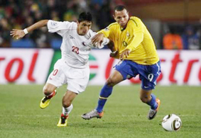 Tiền đạo Fabiano (phải) và đội tuyển Brazil đang hừng hực khí thế chinh phục chiếc cúp vàng lần thứ 6. Ảnh: AP |