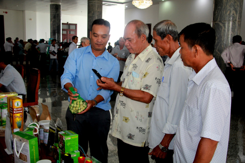 Nông dân thực hiện thao tác truy xuất nguồn gốc nông sản.