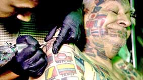 Một doanh nhân ở Thủ đô New Delhi (Ấn Độ) đã xăm hình lá cờ của hơn 300 quốc gia và vùng lãnh thổ trên thế giới để thúc đẩy hòa bình toàn cầu. Ngoài 305 lá cờ được xăm từ năm 2009, hiện trên người của Har Prakash còn có bản đồ của 185 nước. Mặc dù cơ thể đã chi chít hình xăm nhưng người đàn ông mê lập kỷ lục này vẫn muốn xăm tiếp nữa để ghi thêm tên mình vào Sách Kỷ lục Guinness thế giới. Ông hiện đang sở hữu 22 kỷ lục, trong đó có kỷ lục về bức di chúc dài nhất và giao bánh pizza từ New Delhi đến San Francisco (Mỹ).