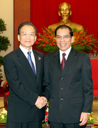 Tổng Bí thư Nông Đức Mạnh tiếp đồng chí Ôn Gia Bảo-Thủ tướng Quốc vụ viện nước Cộng hòa Nhân dân Trung Hoa.