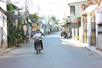 Một tuyến hẻm (thuộc dự án 2) được nâng cấp khang trang, không còn ngập nghẹt vào mùa mưa lũ. Ảnh: A.K |