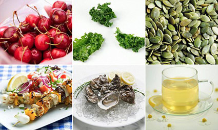 Trong khi đó, hạt bí đỏ, hướng dương, kiều mạch, cá, hải sản, các loại rau lá xanh đậm (như cải bó xôi, cải xoăn