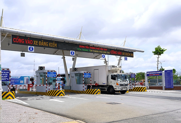Các phương tiện vận chuyển hàng hóa đi vào thành phố thực hiện thủ tục nhanh chóng, khoảng 5 phút/lượt xe