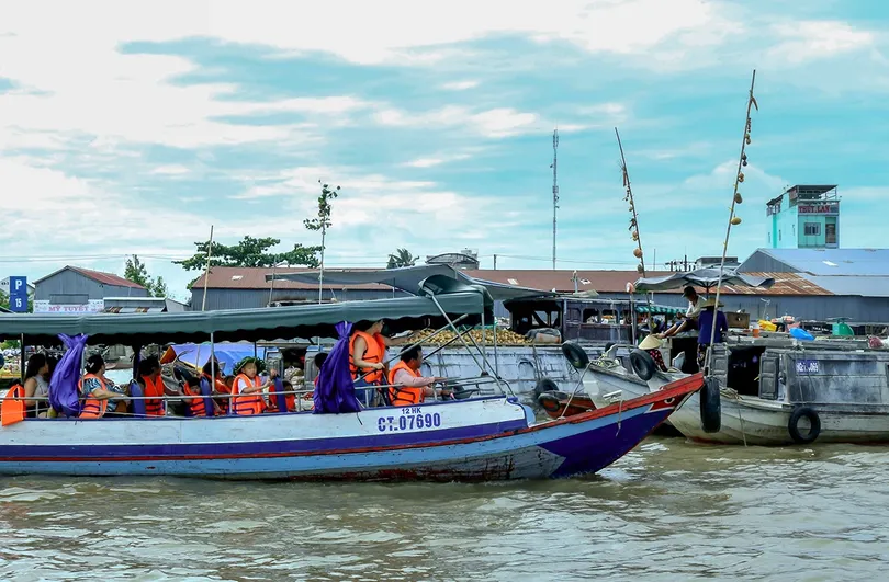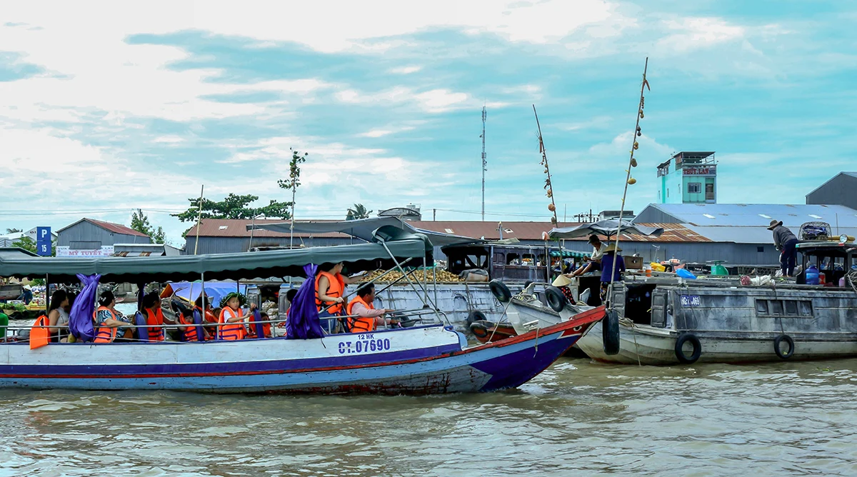 Du khách tham quan chợ nổi Cái Răng. Ảnh: Kiều Mai