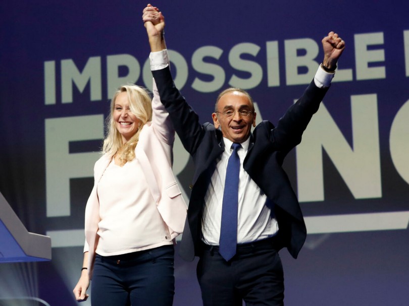 Ứng viên Eric Zemmour (phải) trong cuộc vận động tranh cử ở thành phố Toulon. Ảnh: AP