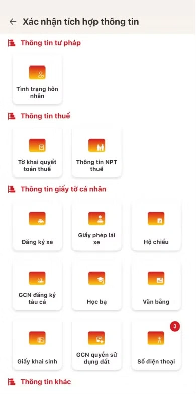 - Nhấn Quay lại để điều hướng về màn Xác nhận tích hợp thông tin
