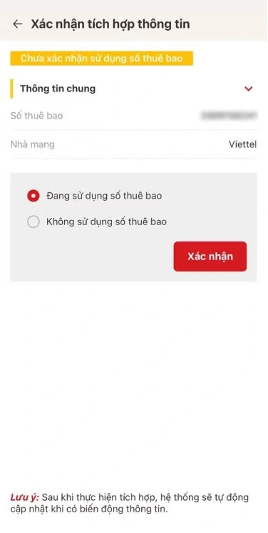 Xác nhận sử dụng/ không sử dụng số điện thoại