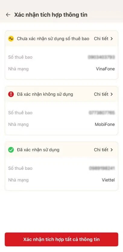 Ngoài ra, với các thuê bao đã sử dụng số thuê bao để đăng ký tài khoản VNeID mức độ 2 hoặc sử dụng VNeID, thẻ căn cước, căn cước công dân gắn chip để đăng ký theo quy định sẽ không phải thực hiện xác thực lại (trừ khi có hoạt động thay đổi thiết bị từ 15/6).