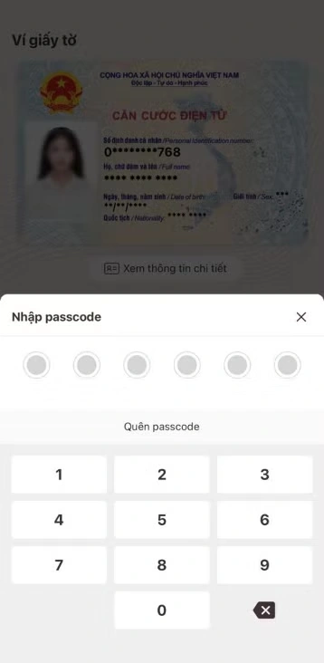 Bước 2: Xác thực bằng passcode hoặc vân tay/ khuôn mặt (tùy theo cấu hình xác thực của tài khoản trên thiết bị).