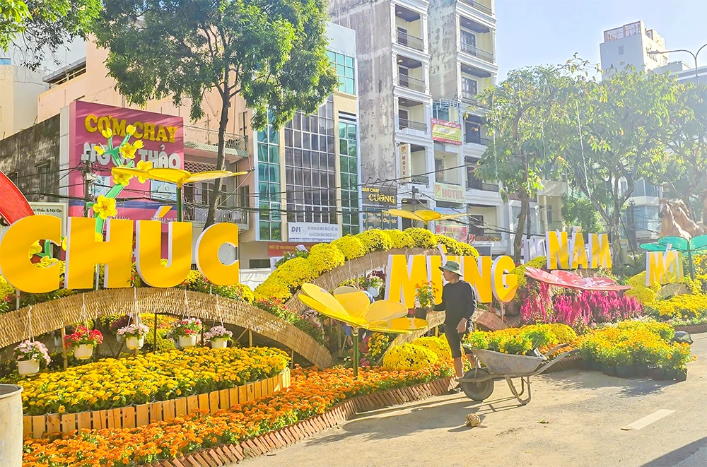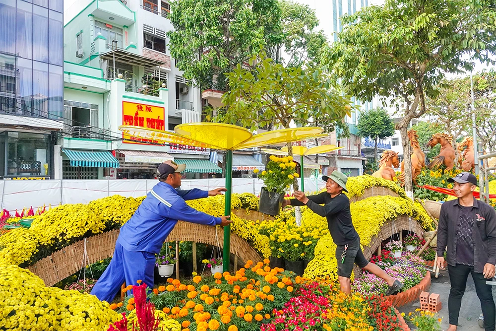 Đường hoa rực rỡ sắc màu, sẵn sàng khai mạc vào đêm 27 Tết.