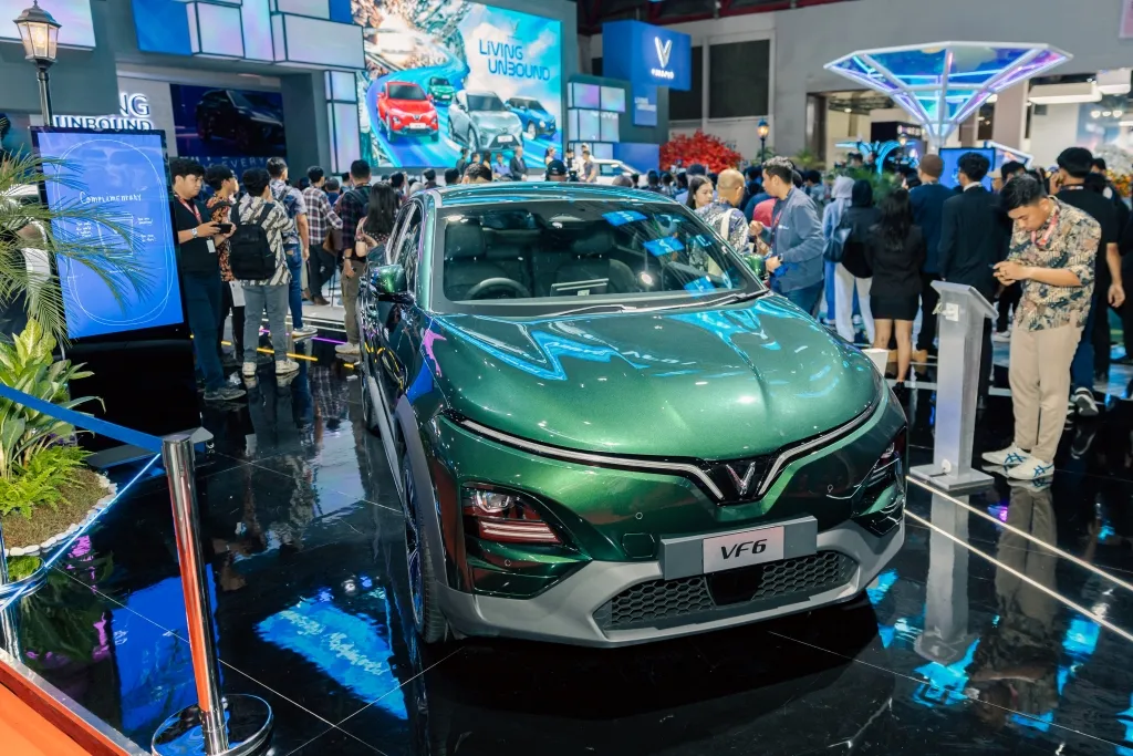 Mẫu xe gây nhiều sự chú ý tại khu vực triển lãm của VinFast là VF 5, mẫu A-SUV mang thiết kế trẻ trung, năng động, phù hợp với khách hàng trẻ, được đặt tại vị trí trung tâm gian trưng bày. Tại Lễ khai mạc Triển lãm, mẫu xe Made in Vietnam này đã được Tổng thống Indonesia Joko Widodo trải nghiệm và đặt bút ký tên. Rất nhiều chuyên gia xe, người nổi tiếng của Indonesia cũng đã thích thú ký lên chiếc xe này.