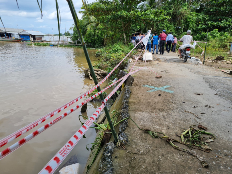 Khu vực sạt lở tại phường Trung Kiên, quận Thốt Nốt đang đầu tư công trình khắc phục.