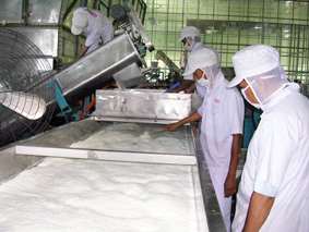 Đa dạng hóa mặt hàng xuất khẩu là một yêu cầu cấp thiết. Trong ảnh: Chế biến cơm dừa xuất khẩu ở tỉnh Bến Tre. Ảnh: T. LONG |