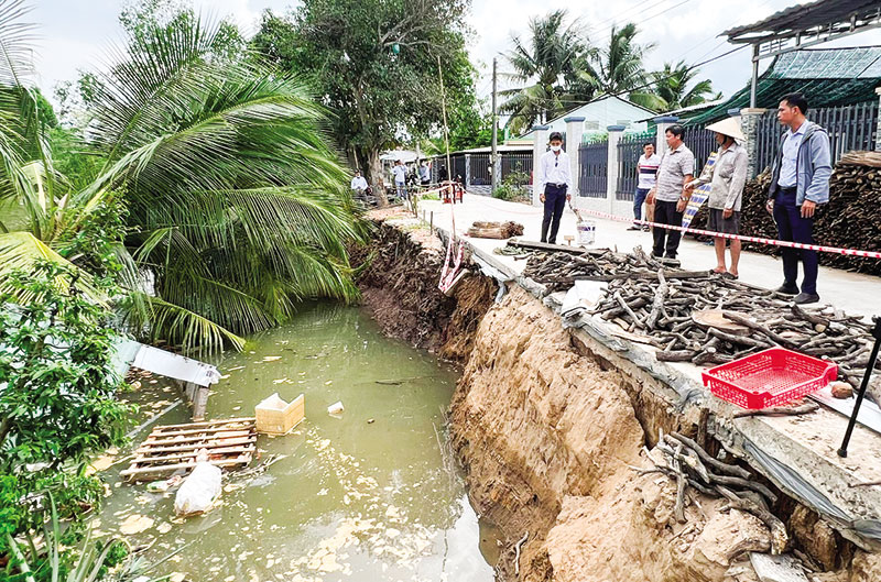 Đoạn sạt lở cặp rạch Xẻo Gừa, khu vực Khánh Bình, phường Phú Thứ, ăn sâu vào đất liền, nguy cơ sạt lở đường giao thông.