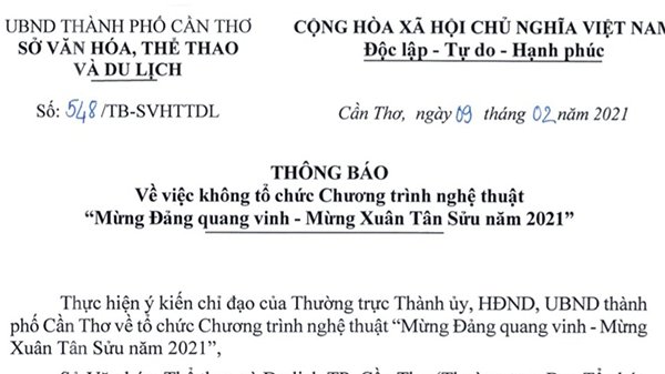 Cần Thơ không tổ chức chương trình nghệ thuật đêm Giao thừa Tết Tân Sửu