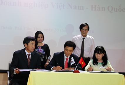 Hiệp hội Doanh nghiệp TP Cần Thơ đã ký kết hợp tác với Hiệp hội Doanh nghiệp thương mại Hàn Quốc nhằm tăng cường các hoạt động hỗ trợ kết nối doanh nghiệp Hàn Quốc với doanh nghiệp TP Cần Thơ. Ảnh: MINH HUYỀN |