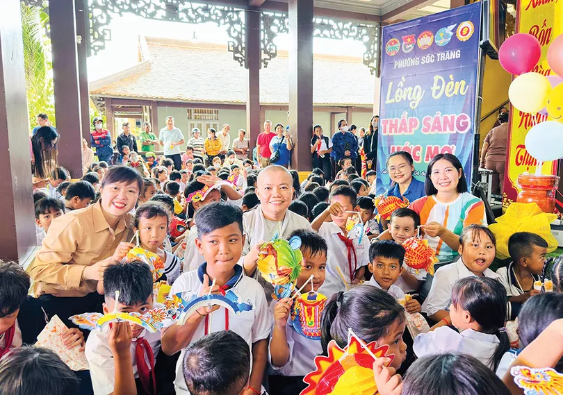 Thiếu nhi phường Sóc Trăng vui Tết Trung thu, với chủ đề "Lồng đèn thắp sáng ước mơ". Ảnh: CTV