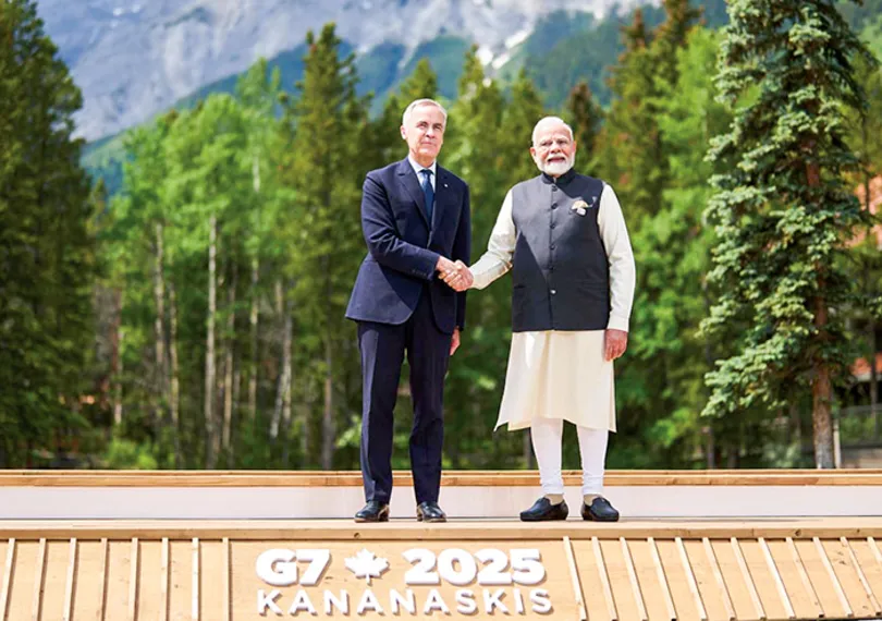 Thủ tướng Canada Carney (trái) và Thủ tướng Ấn Độ Modi gặp nhau bên lề Hội nghị thượng đỉnh G7 ở Canada năm ngoái. Ảnh: AFP