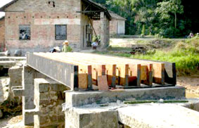 Trung tuần tháng 12 vừa qua, các công nhân đã hoàn tất việc lắp ghép cây cầu dài 10 m dựa theo thiết kế của giáo sư Xiao ở một ngôi làng thuộc tỉnh Hồ Nam. Sử dụng các dầm cầu bằng tre “đúc sẵn”, nhóm 8 công nhân chỉ mất 1 tuần là hoàn thành cây cầu. Xiao cho biết cầu đủ độ mạnh để chịu được sức nặng của chiếc xe tải 16 tấn, và dựa theo kết quả kiểm nghiệm kết cấu cầu, nó thậm chí có khả năng chịu lực cao hơn.